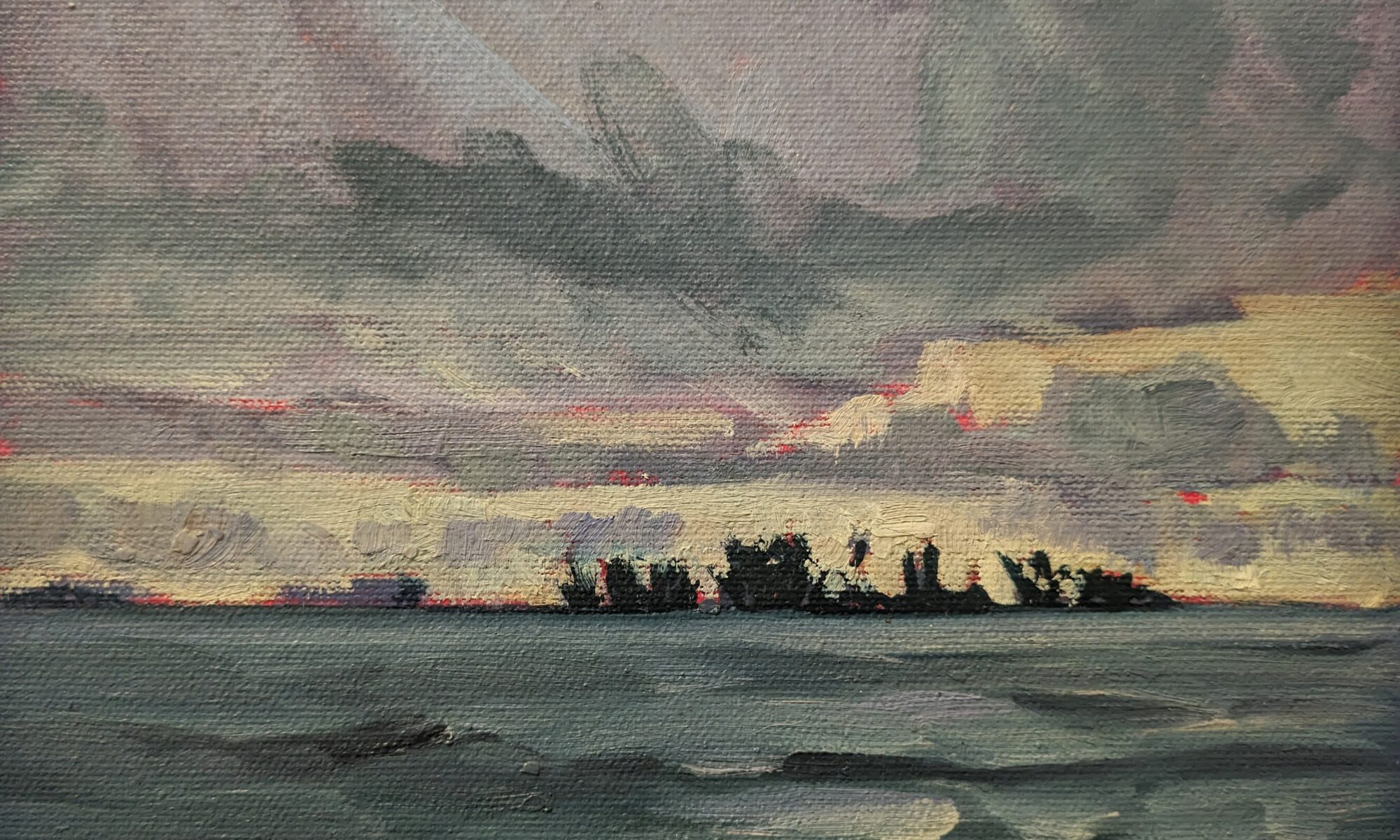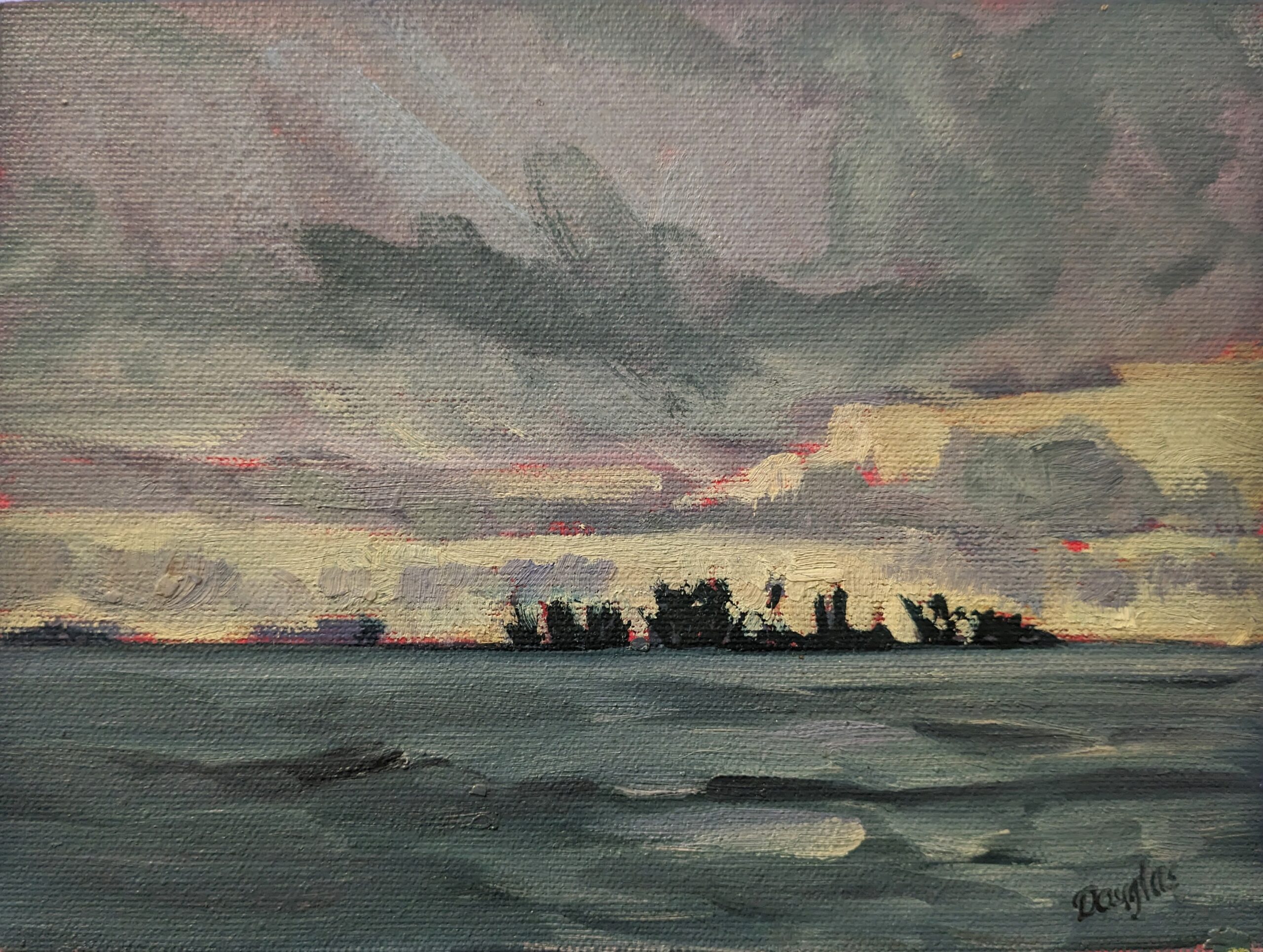 Rainstorm on Lake Huron is 6X8, oil on archival canvasboard.